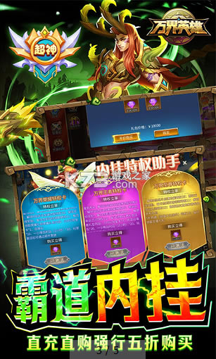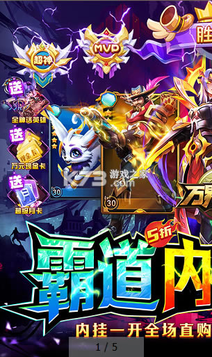 ★【内挂特权】:霸道内挂特权:游戏内所有直购礼包和直充档位永久5折购买(超值大礼除外),还可提前解锁命运之间,召唤传说装备和顶级英雄快人一步!还可每日领取现金卡和命运召唤石、多种材料