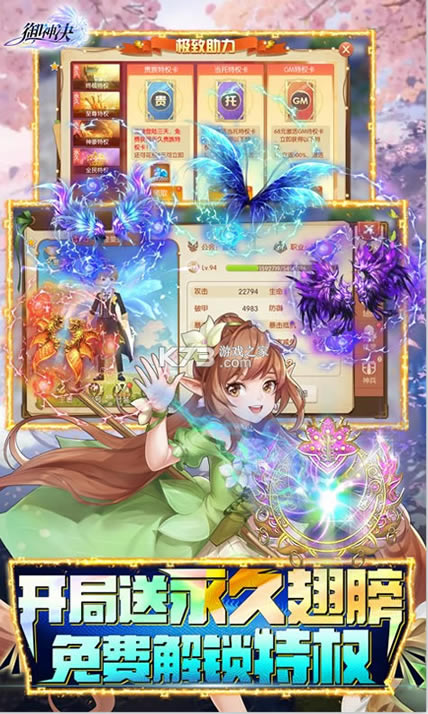 《御神决》送万抽轻松转到手,领真充碎片,探索异次元的魔法世界,轻松社交,丰富的活动,卡通奇幻风3d的游戏,送满v开局就送永久翅膀,免费解锁超级多的特权,海量资源1钻购买,快乐刷充器来袭。