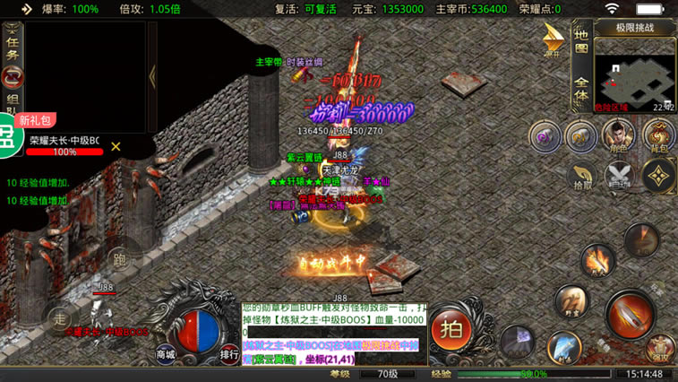 ★自动挂机,自动捡物,穿戴自动鉴定,装备全部靠打,PK全部靠爆;