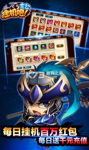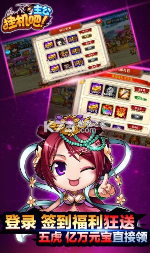 《挂机吧主公》这款游戏中谁是主公?当然是身为玩家的你拉。那谁让你挂机?当然是你手底下的一批精兵强将啦。哦不,这些武将一开始到你手底下某事的时候都只是小菜鸡,你必须把他们培养成一骑当千的猛将。要不然,当你挂机回来,会发现你的武将已经全倒在地上了。