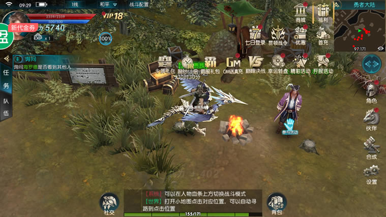 新手礼包:寻宝劵*2,生命宝石*30,祝福宝石*50,金币*200万