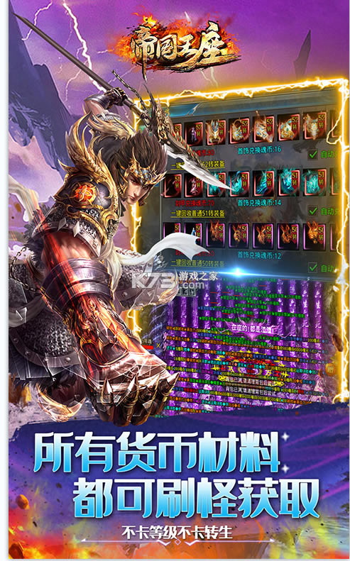 《帝国王座(神器无限刀)》这是一款全新的魂环魂骨版本,超快刀速,超爽爆率,让玩家们有更极致的体验。刀刀切割,爽不停,上线就送魂骨,各种福利送不停。各种材料和货币都能刷怪获取,不卡转生不卡等级,只要你有时间散人也可全身终极,赶快下载玩玩吧。