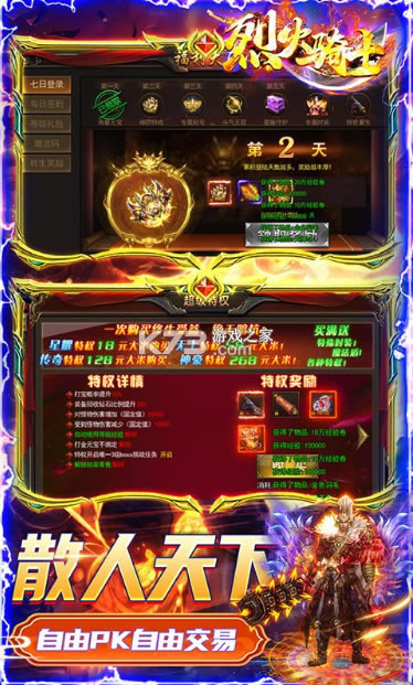 《烈火骑士》是一款传奇类型的手游,游戏增加了魂环系统的玩法,让玩家战力飙升,游戏主打炫酷特效的方向,游戏中的技能、称号、装备都十分的炫酷,让人眼前一亮,喜欢的小伙伴快来下载体验吧~