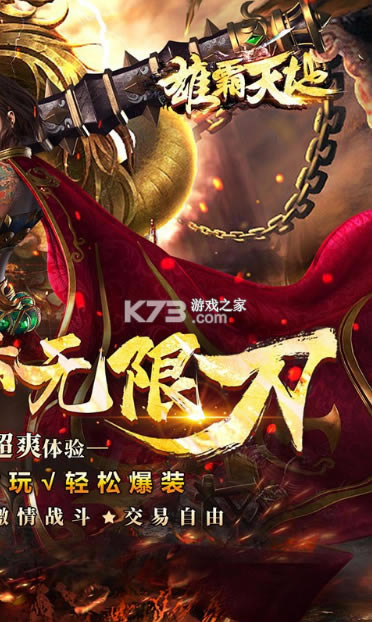 热血开篇,初心不改。全新超攻速神器传奇手游【雄霸天地(极速爽爆版)】正式和大家见面啦,复刻经典百倍爆率。体验超爽攻速,享受爆装的快感,游戏玩法简单易上手,装备好爆,拒绝烧脑,点燃指尖激情。亲临战场,血战天地,等你一起来战!