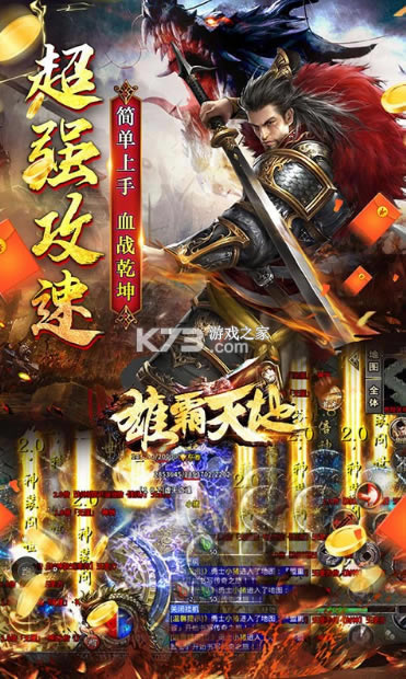 热血开篇,初心不改。全新超攻速神器传奇手游【雄霸天地(极速爽爆版)】正式和大家见面啦,复刻经典百倍爆率。体验超爽攻速,享受爆装的快感,游戏玩法简单易上手,装备好爆,拒绝烧脑,点燃指尖激情。亲临战场,血战天地,等你一起来战!