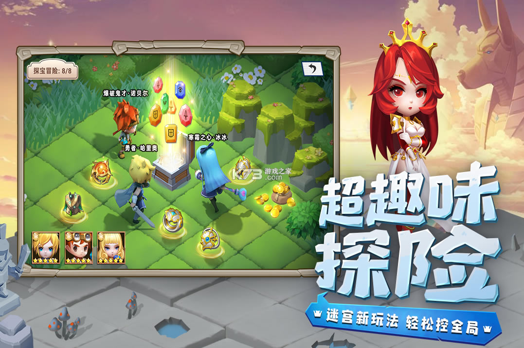 1.游戏里有十几座的地图迷宫任你探索,深雪之山的急冻地形、暗光森林的食人狂蜂、失落遗迹的喷火机关,探险的路上遇到的种种机关数不胜数~趣味十足,更有丰厚奖励等你来拿。