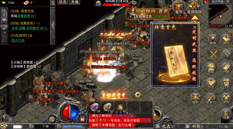 大量日常任务每天必刷,神秘boss登场,带来福利,传奇王者一招高爆。