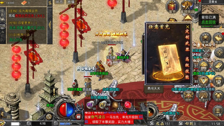 组队兄弟争霸沙城,随时开局,同台跨服竞技PK,全服传奇人物排行榜展示。