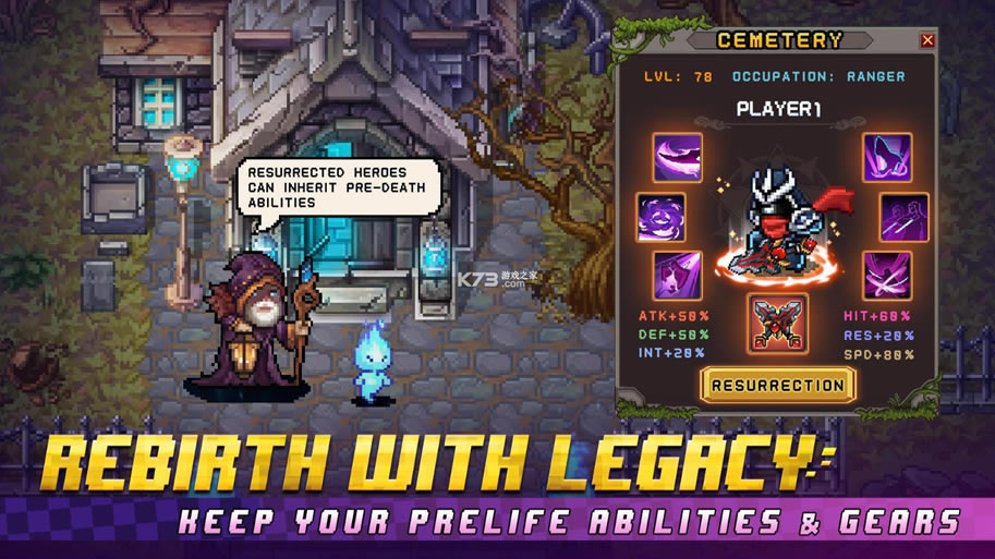 《像素传奇地牢重生(Pixel Legacy - Dungeon Rebirth)》是款像素风格的手机mmorpg网游,虽然游戏画面采用复古的像素风表现,但你可以自由和升级角色技能,改造角色能力,购买或掉落极品角色套装,更有超过50名以上的强力英雄供你驱使。