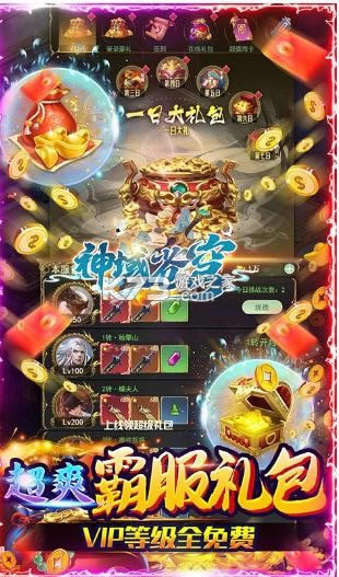 《神域苍穹》细腻的剧情酣畅淋漓的游戏对决,开启巅峰的战斗,签到送真充超爽霸服的礼包,VIP等级全免费领神充卡,顶级的时装1秒百级,开启真命天劫的玄幻之途,体验苍生的巅峰之感。