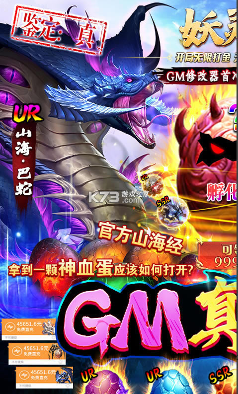 不要再玩假山海经了!上线就送GM修改器,无线资源免费激活!!日常活跃天天送直充卡,不花钱也成神!吞噬永无止境,山海经异兽手游巨作《妖灵契(GM限血蛋)》强势来袭,超清画质,特色系统,多样玩法,海量异兽给你前所未有的刺激体验。