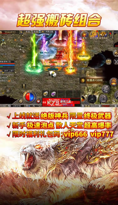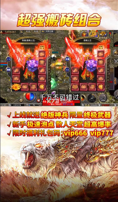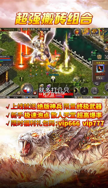 2、游戏中玩家不仅可以领取到福利,还有激情的打宝以及超高的爆率,拿奖励与装备真的会拿到手软