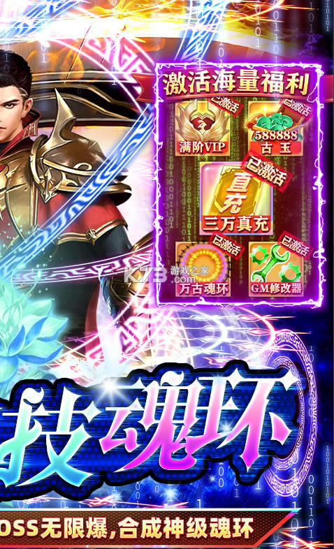 ★全新版本,增加了万古魂环系统,所有的魂环都可通过击杀BOSS掉落进行合成获得;装备魂环更可享受超高攻速、极致爆率加成、以及刀刀割裂尊享属性;