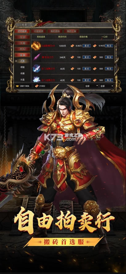 平民玩家福音,拒绝氪金,散人友好,可自由买卖,回收装备,一秒到账。