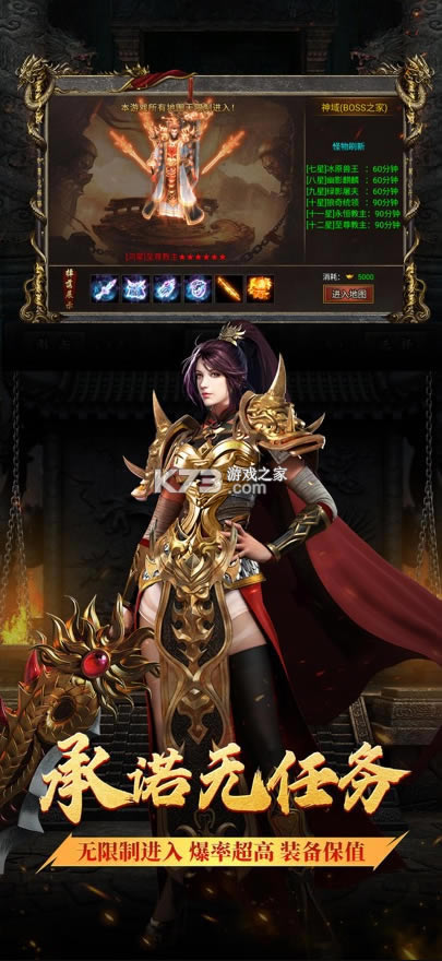 丰富的游戏玩法,冰火战场,热血激情的神魔霸主和攻城战玩法。超越经典,碾压情怀,流畅操作等你来!