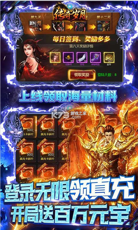 《传奇岁月》领取时装套装,获得三大投资福利,通过击杀boss来领取,纯纯的福利的玩法,签到就送充值卡,领取满阶充值就送,四职业传奇游戏,免费领全新终身返利福利,抽到爽,邀请好友来开启快乐之旅。
