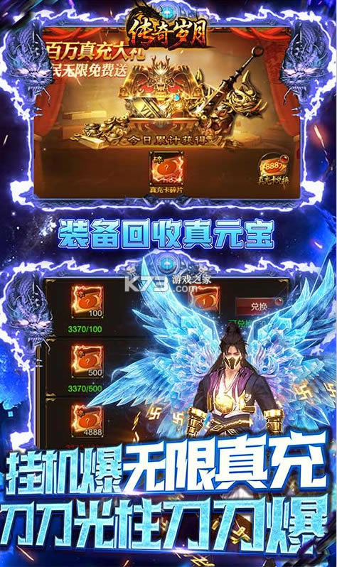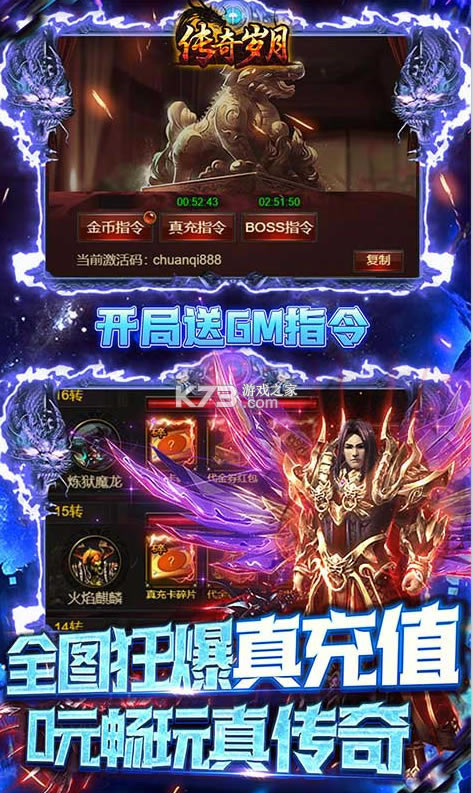 《传奇岁月(GM余额直充)》是款四职业动作传奇手游!上线送vip15,游戏内含全新的GM商城系列玩法,GM余额宝功能可通过游戏行为获取余额进度,可在游戏内免费提取!全新终身返利福利,终身每日享受真充福利!更有全新GM指令可以无限获得资源!在线无限抽真充卡,让你抽到爽!丰富的跨服玩法让你体验无限的激情!快来邀请你的好友一起来场快乐的传奇之旅吧!