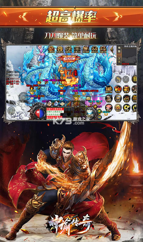 明星代言,一刀满级立即加入激情热血传奇之战等你加入,高爆率,多装备,丰富材料,上线就能获得每场战斗让你爽,变态神装免费得,多样神技随心学习,野外地图畅爽对决,创世神装副本获取,一键在线体系收回,体验各种激情与快感