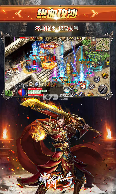 网络游戏热血传奇场景,每日万人同服,轻松挂机,上线千人攻城,离线刷神转,让你体验酣淋漓的畅快游戏,随机刷新的boss机制