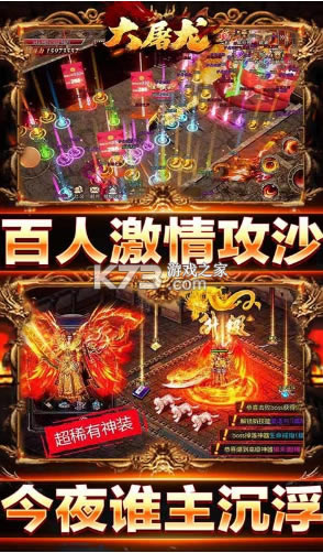 大屠龙开创全民BOSS、神装特戒、帮会攻沙和跨服竞技等玩法,融合全战斗系统,带你体验不一样的pk快感,打造属于自己的传奇霸业。