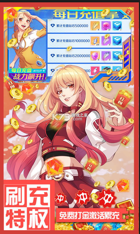 ★第三福利:闯关送直充点,每天白给上万直充点。