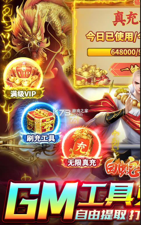 ★开局就送GM工具,刷经验魔窟和击杀BOSS可快速获得打金卡,打金卡可替代RMB进行免费充值,免费激活当托卡后每日打金无上限!