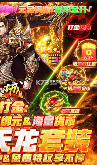 《烈火皇城-送天龙神装》继承了复古传奇经典、情怀玩法,融入移动化创新内容和玩法。让玩家可以在经典的玛法大陆闯荡,通过日常任务获得足够的资源,确保个人快速发展,一起来成为全服最强的沙巴克城主。创角送神装+百万绑元,更有大量货币免费领取,诚邀您王者归来,再战传奇!