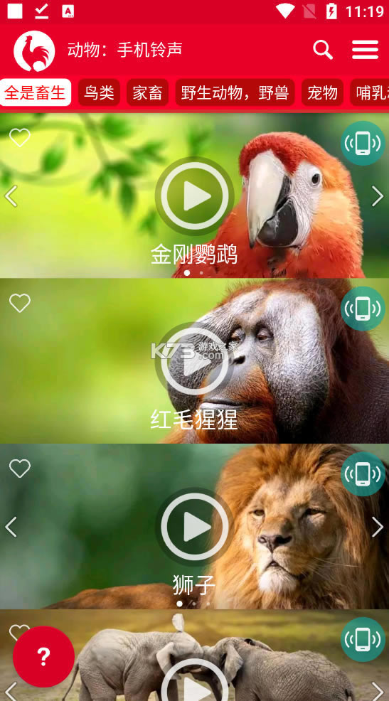 《动物手机铃声》是一款动物老师软件,软件内包揽各种各样动物的叫声,用这些叫声来做铃声或者提示音更是别有一番风味。喜欢的下载赶快来下载体验吧!