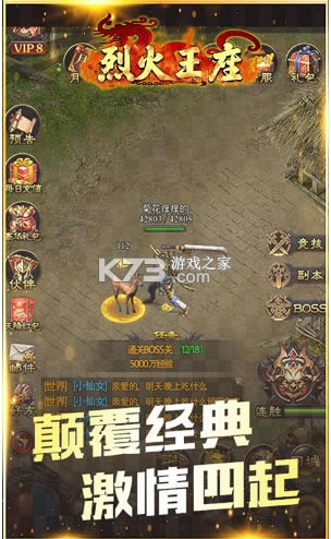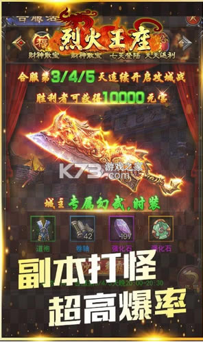 《烈火王座》轻松升级一键挂机,奖励翻倍玩法更丰富,热血攻沙还原复古的游戏画面,跨服争霸助你成为最时尚的达人,保证平衡所有的神装全靠打,不花钱也能快速的称霸,经典的传奇战斗,快速的成为真正的玛法世界的勇者。