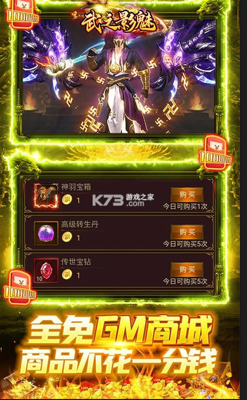 《武之影魅-GM打金直充》携最强GM打金直充版本福利华丽归来!上线送百万元宝、热血神器,无限福利每日壕领不停!上线激活gm特权,快速开启gm商城,绝版时装海量材料无限领取!BOSS爆率全部上调1000%,无限爆真充,福利拉满在线打金!每日领取gm指令,无限领取金币元宝真充卡!快邀请兄弟齐聚沙城,称霸全服!