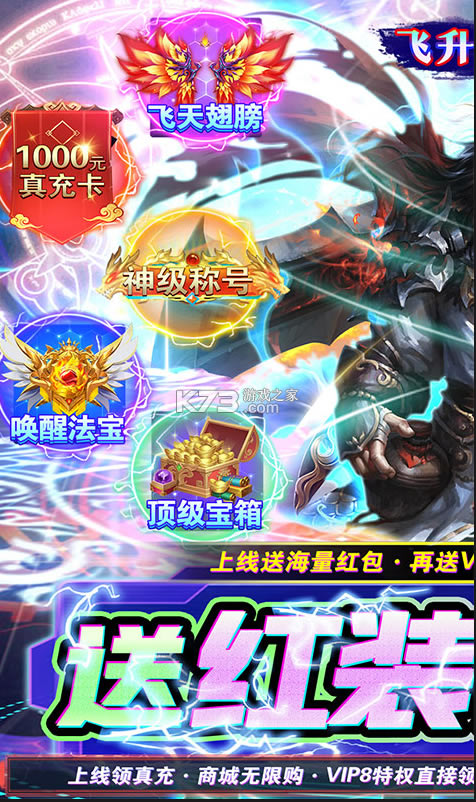 ★后缀说明:送神装真充:创建角色后就可以领取VIP1-8的奖励,可以获得红装碎片