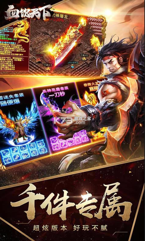 内置神兽系统,在参与战斗时可于玩家并肩作战,神兽还有专属的控制技能,游戏不需要玩家去费心,闲时收装备即可,非常的省时,顶级画质配以最近全新制作场背景,使人享受不已,让所有玩家都无法忘记身处其中的日子,神兵利器再现江湖,装备全靠爆!没有vip,全部公平透明,这里只讲实力!
