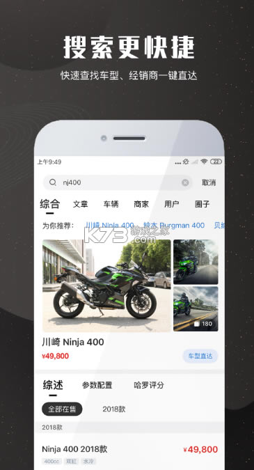 无论上市的,没上市的,国内的,进口的,只有你想不到没有你找不到的车型,10万+张高清实拍图,还有海量的车辆视频,全方位欣赏你喜欢的摩托车。