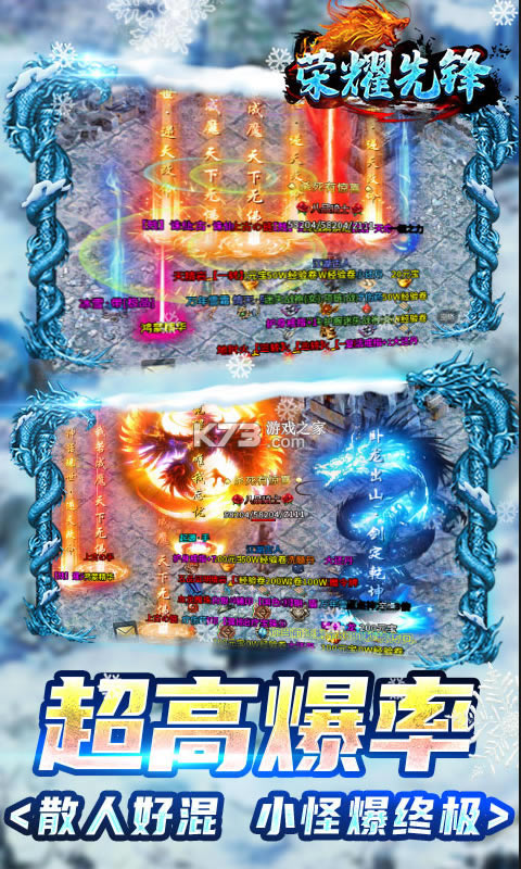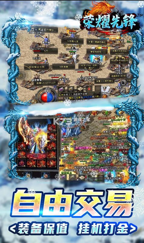 《荣耀先锋》打造全新的千万冰雪传奇游戏,真实精彩的玩法喜欢传奇的兄弟们别错过,控制角色来开启全新的挑战,绚丽的技能极致的体验感,万人全屏攻沙更加的热血恢弘,自由掉落汇聚了玛法的史诗级的公会,开启热血争霸。