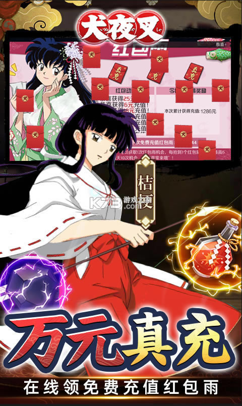 《犬夜叉》上线即可送UR犬夜叉和200连抽的福利,闯关就爆真充每天送上千的真充,良心游戏福利满满,推图就送抽奖券,无限扫荡直接升级免费那,充值靠手速每天就能领到手软,月卡1元购买,良心游戏福利满满,双重出击不停歇。