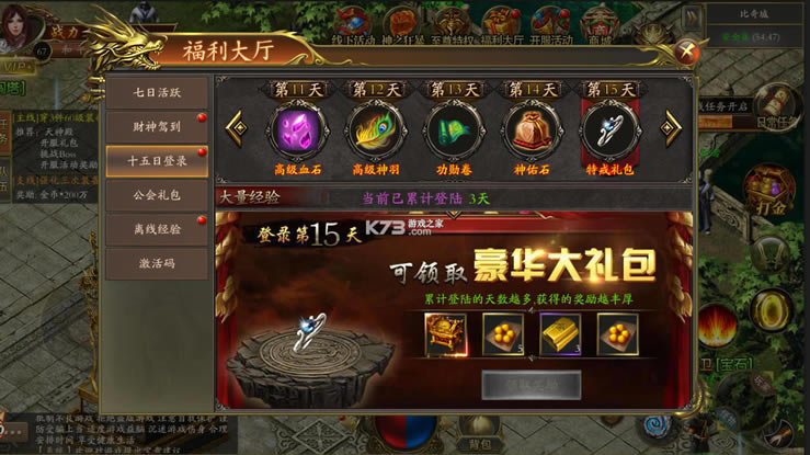 ★十五日登录领取包含特戒和众多材料的豪华大礼包