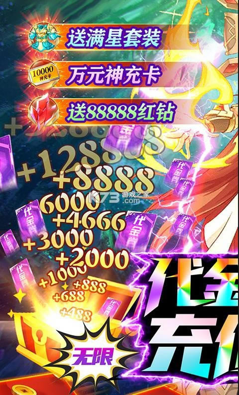 ★创角奖励:VIP9激活卡+10000元神充卡+88888红钻+328888蓝钻+1000W金币
