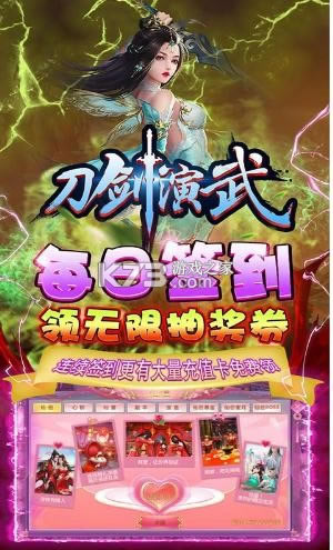 《刀剑演武》每日领超级多的抽奖券,所有的装备和道具都可自由的交易,提升修为,画风也很精美华丽,自由的组装道具资源自由的构建情节,画面如仙境海量资源大赠送,最高可爆648充值卡,斗仙斗法一决高下。