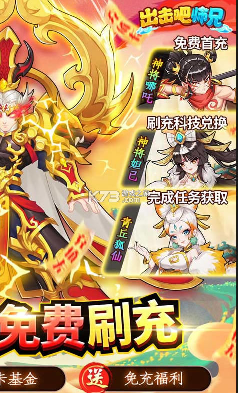 《出击吧师兄》海量的特权,免费首充点金特权福利超级多,领取超级多的特权福利,通通免费送无限灵玉送到手软,每日在线送免充卷,领资源和千元真充以及开局领雷震子角色,每日签到领红包,不肝不氪尽情的来畅玩。