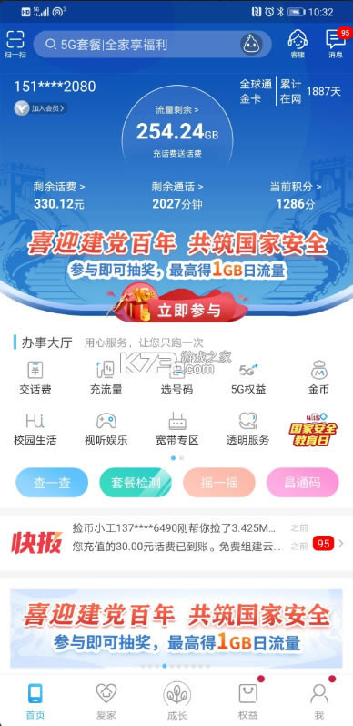 权威流量统计、流量余额、流量预警与直充,各类流量包、加油包等随时订购,明白消费直观可信