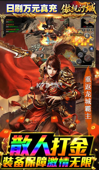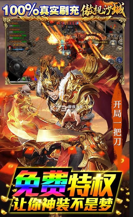 《傲视沙城》首充即可领取黄金裁决,0氪金来做大佬,每日活动不停歇,无限刀,攻速无上线,礼包狂欢不止,真充随便爆,福利送不停,和兄弟们热血攻城,职业技能自由的pk,万倍爆率热血开局,100%的来刷充。
