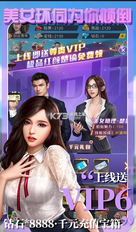 热门火爆的商战类手游,游戏画面精致细腻,玩法丰富,用精准的眼光选择项目,资产翻倍企业上市,从此踏足商界,成为富豪,招聘精英人才,招贤纳士,找到最适合你的美男美女秘书助手。