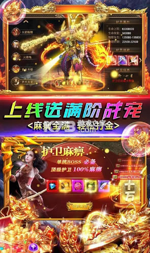 ★上线就送战宠满阶直升丹,还免费赠送100%麻痹特权,轻松挑战所有BOSS