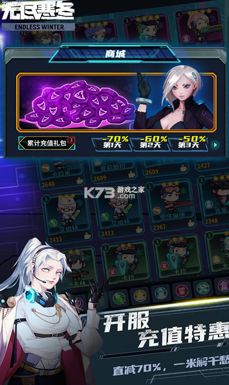《无尽寒冬》资源满满奖励多多,全服奖励每天都可领,招募自己的队友,九大职业精细分工,探索远古的大陆,获得巨额的增幅,登录明星助阵,商城无限,共玩家们享受,超多玩法十分的有趣,多样模式乐趣超级多。