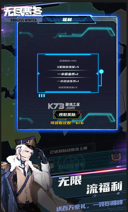 《无尽寒冬-无限科技充》是一款模式题材,无限流的挂机卡牌游戏;玩家可自行招募自己的队友,在严寒末世中探索更多的未知;