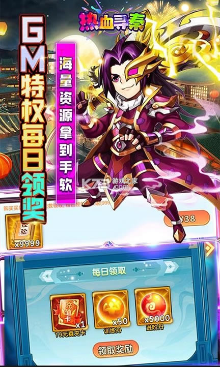 《热血寻秦》展开全新的历史画券,炫酷的英雄技能,身临其境的体验,登录就送万元真充,精美的界面身临其境的体验,登录送万充,无需氪金直接起飞,打造神将天团,送极品武将免费升SVIP等级,海量的福利领到手软。