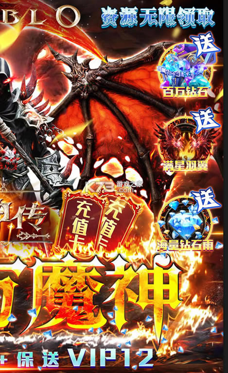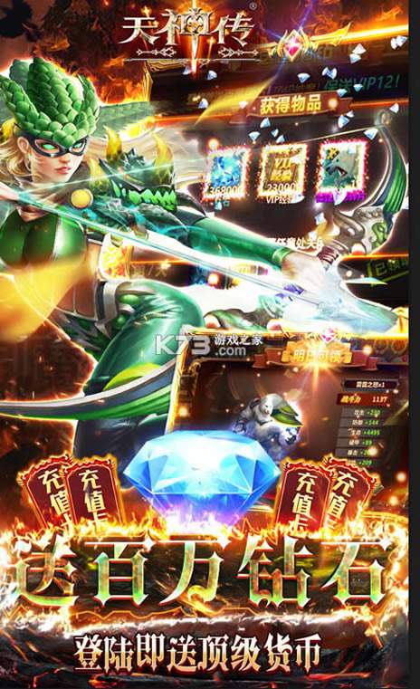 ★后缀说明:登录送百万钻石,上线倒计时送幽冥死神、恶魔领主二选一,战力猛涨破坏力超强