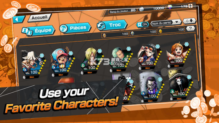 3、操纵充满特色的航海王角色,在队伍对战中取胜。