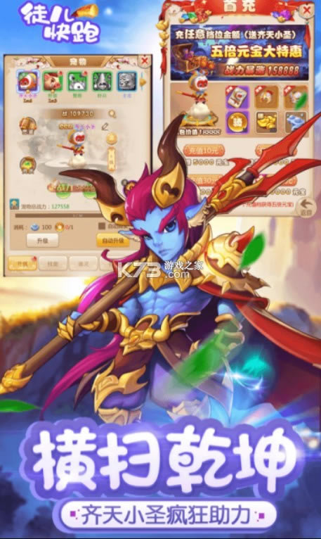 徒儿快跑西游题材改编,经典归来,再续西行篇章!融合传统回合制游戏的经典玩法,又集宠物养成、师门种族、帮派结盟、比武竞技等特色玩法,全都能让你满足。清新Q版的画面、丰富玩法、紧密的好友交互、激烈的帮战对抗,将会带给新老回合制玩家极致的体验。不用为宝宝打书而烦恼,在这里打书几率百分之百,满技变异宝宝不再是梦,SSSSR级珍兽、顶级技能书...轻松玩转西游回合!