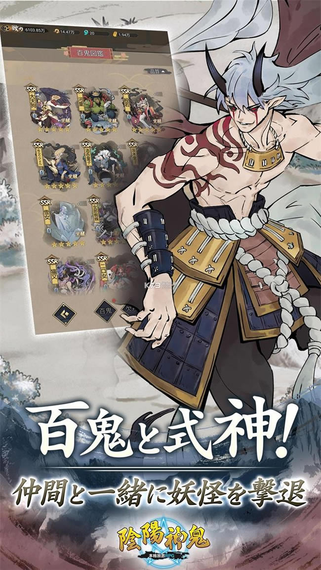《阴阳神鬼(陰陽神鬼)》是放置题材的日式rpg游戏,游戏中登场的角色自然是日本的神话角色和与鬼怪打交道的阴阳师了,你需要收服不同的妖怪为同伴,在这个世界里修行,与百鬼和式神展开新的物语。